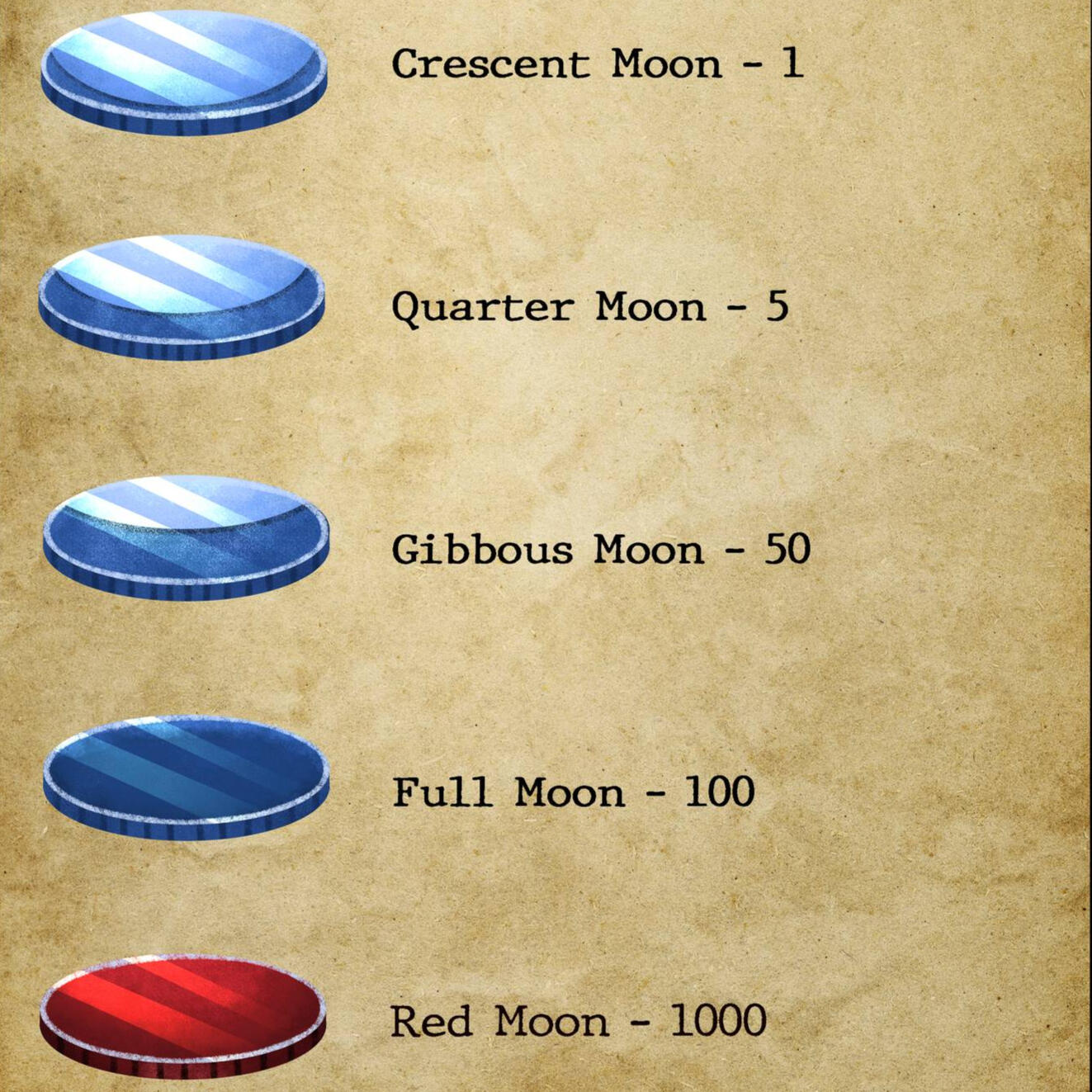 Lunacorns have a formal currency known as Moonies. Below you will see each coin and their value